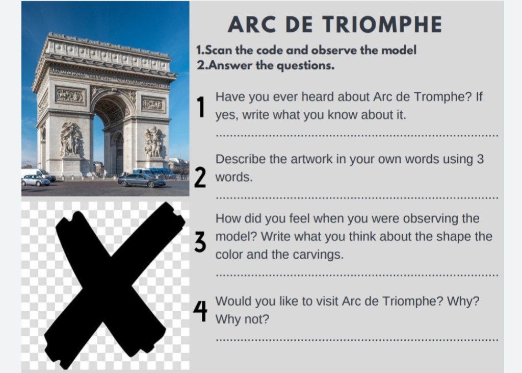 Hello ZG followers… Today I am going to talk about our AUGMENTAD REALITY based task. We made groups of 3 and prepared material for students using Augmentad Reality with app ARize. My group friends were Adile Kınay and Dilara Katmer. We prepared handout which is about trip to Paris consisting of 2 landmarks, one museum, one local dish and one place to write e-mail. To be able to make student feel like a in a real trip we took advantages of augmented reality with tools like 360 degree videos and other explaining videos about the places. Actually, we were far away from each other as group members, and it was hard to cooperate in a efficient way. During creating augmentad reality images we had tough times too… As there is no other efficient application to create images we used ARize but it is also not an practical application.