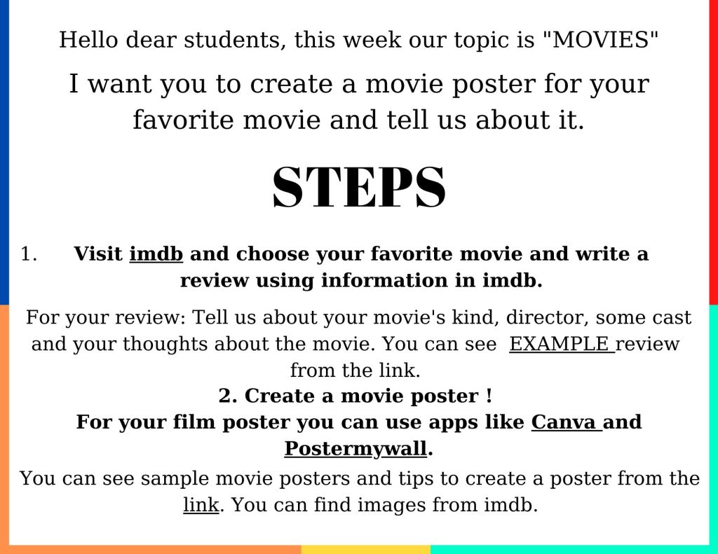 The project was from the Movies unit and I want you to create your own film poster according to steps in it.